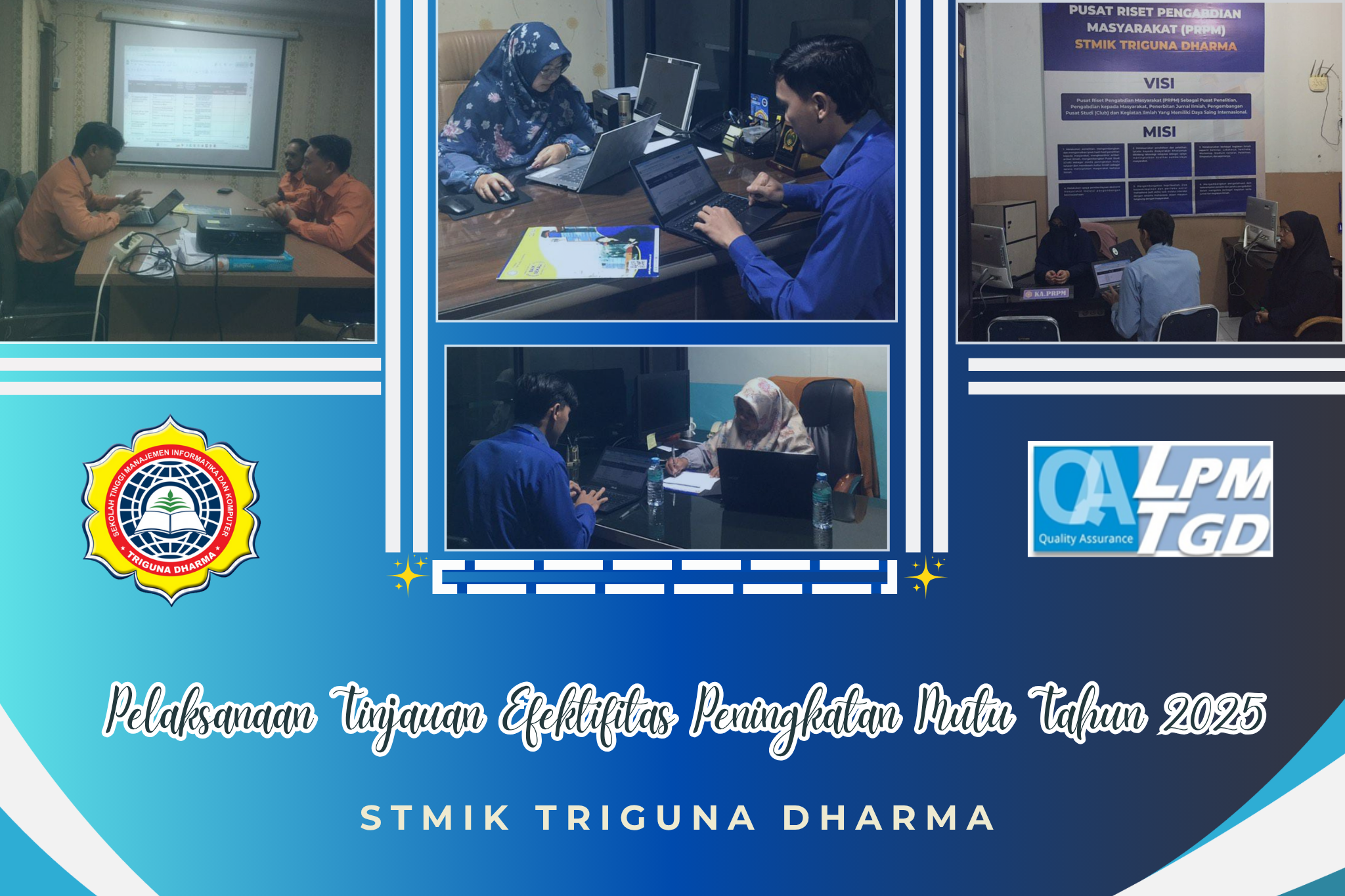 LPM Telah Melaksanakan Tinjauan Efektifitas Peningkatan Mutu Manajemen STMIK Triguna Dharma Tahun 2025 Pelaksanaan Tinjauan Efektivitas Peningkatan Mutu Tahun 2025 telah dilaksanakan sebagai bagian dari komitmen STMIK Triguna Dharma dalam menjaga dan meningkatkan mutu pendidikan secara berkelanjutan. Tinjauan ini dilakukan berdasarkan hasil temuan Audit Mutu Internal (AMI) Siklus VI yang telah selesai dilaksanakan sebelumnya.…